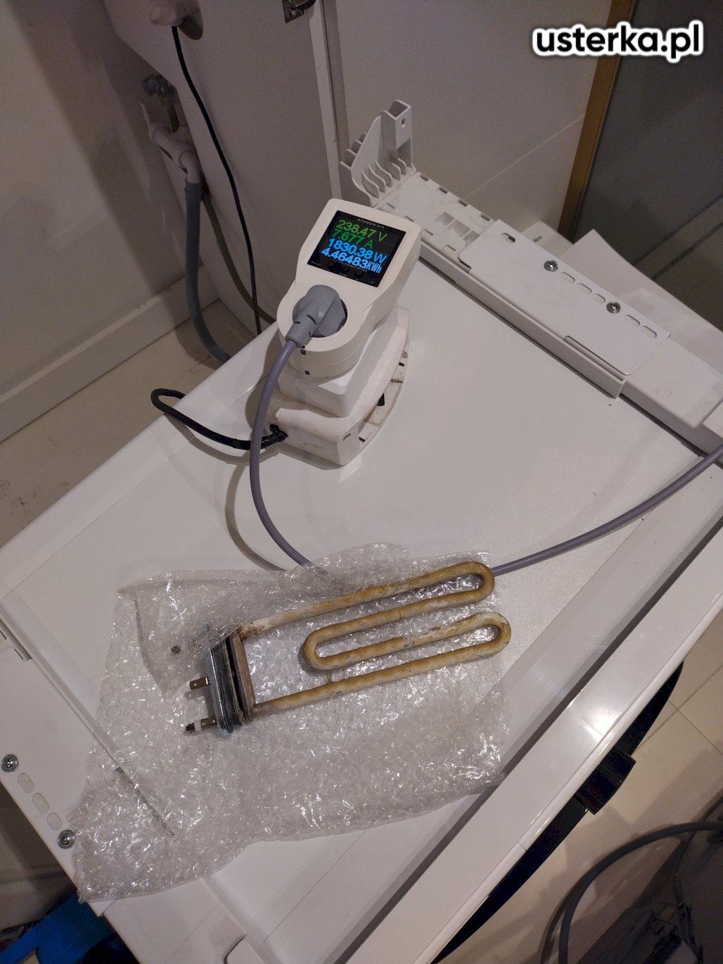 Wymieniono uszkodzoną grzałkę, pralka działa prawidłowo.