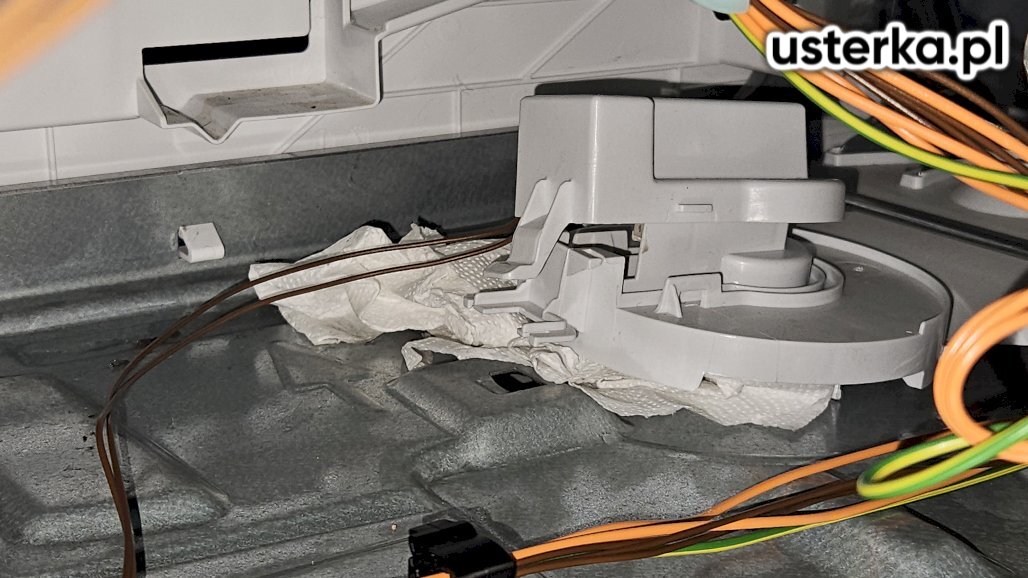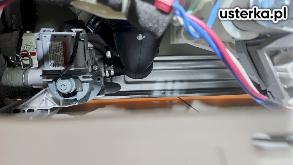 Sprawdziłem pralkę z zablokowanymi drzwiczkami mimo sygnalizacji otwarcia. Zdemontowałem blokadę, usunąłem kulkę blokującą rygiel, a następnie zamontowałem elementy z powrotem i wykonałem testy.