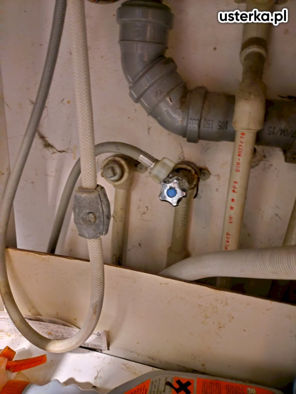 Udrożniono odpływ wody – usunięto zator w zaworze kulowym.