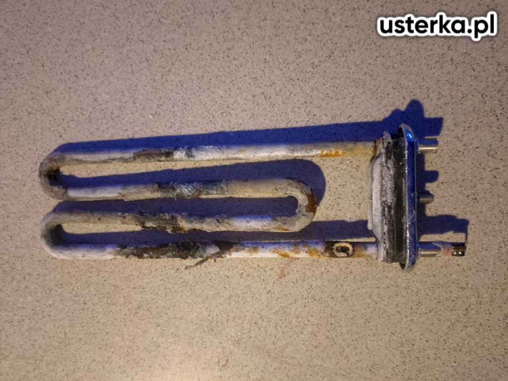 Zdiagnozowano uszkodzoną grzałkę, która wymagała wymiany. Przeprowadzono demontaż starej i montaż nowej grzałki oraz wykonano testy urządzenia.