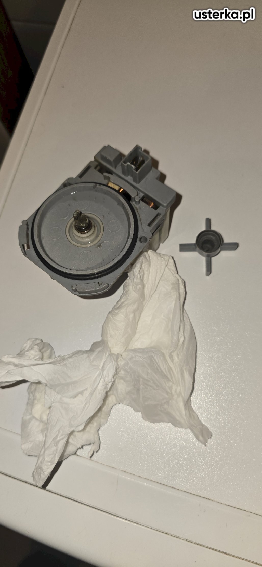 Wymieniłem uszkodzoną pompę odpływową z powodu złamanego wirnika. Po naprawie pralka działa prawidłowo, nie przecieka i sprawnie odpompowuje wodę.