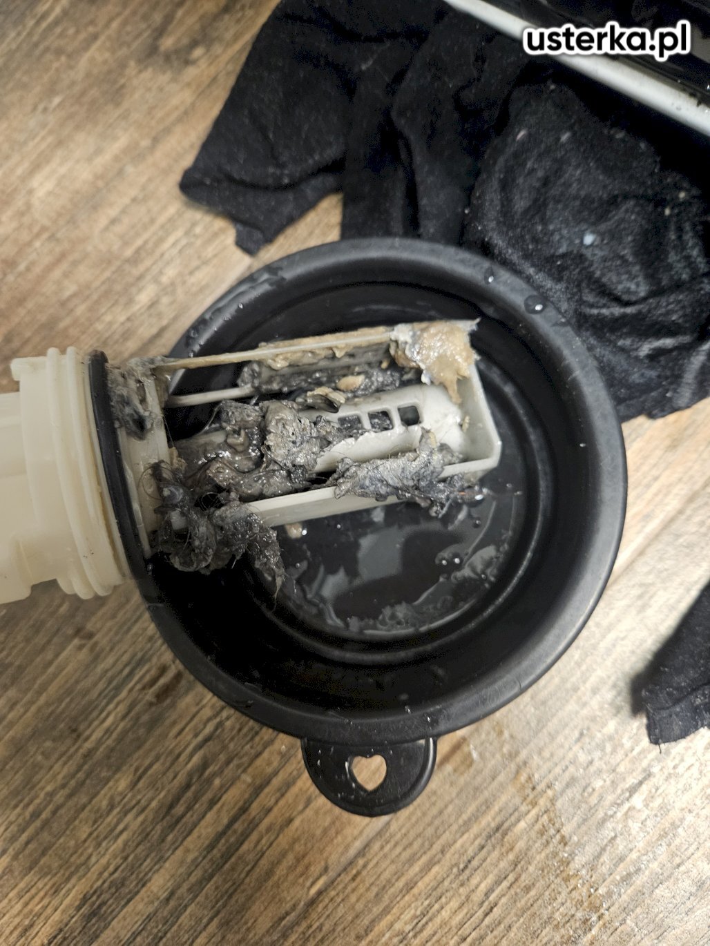 Przyczyną awarii pralki był zatkany filtr, który uniemożliwiał odpompowanie wody i przerywał cykl prania.