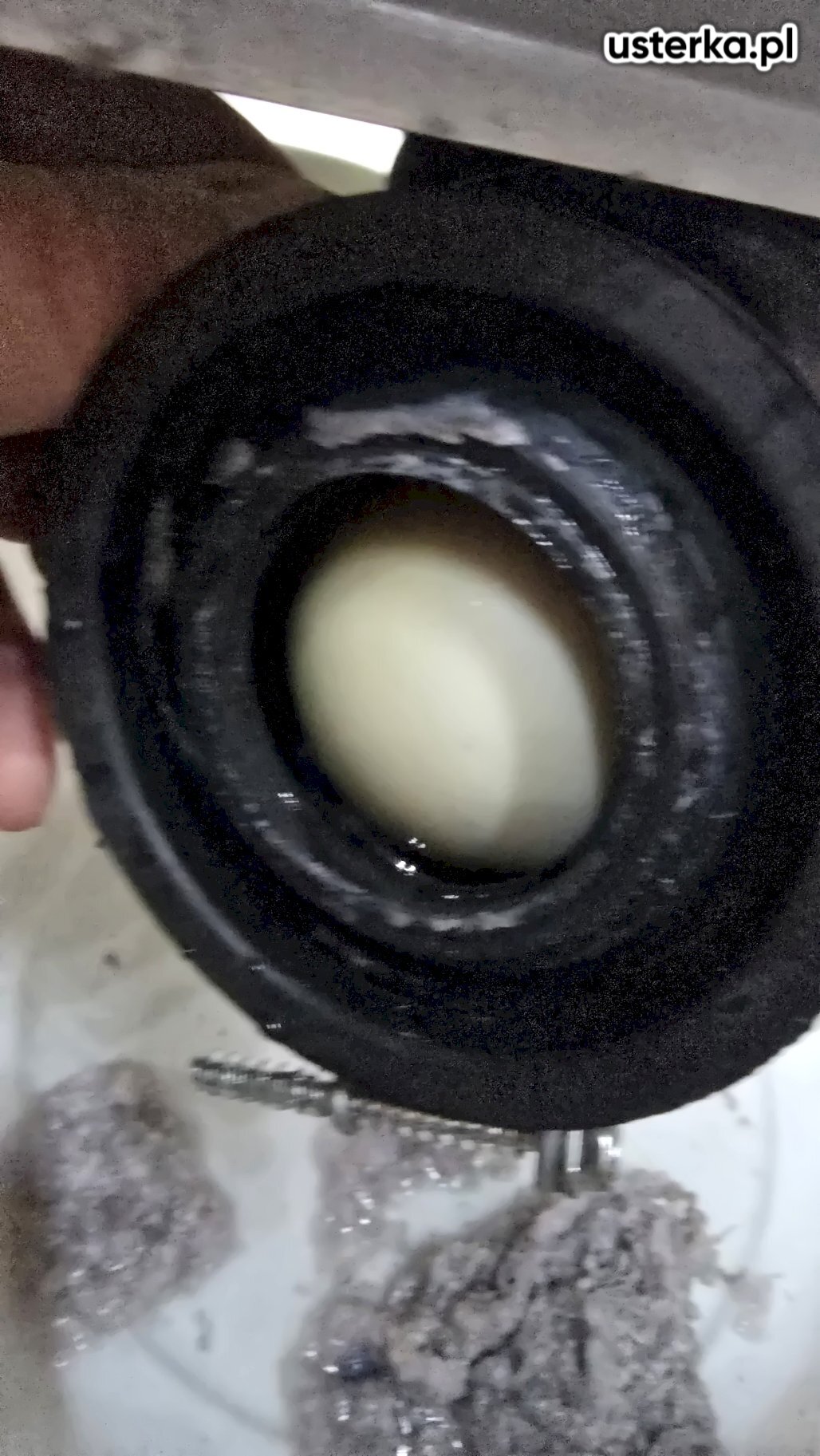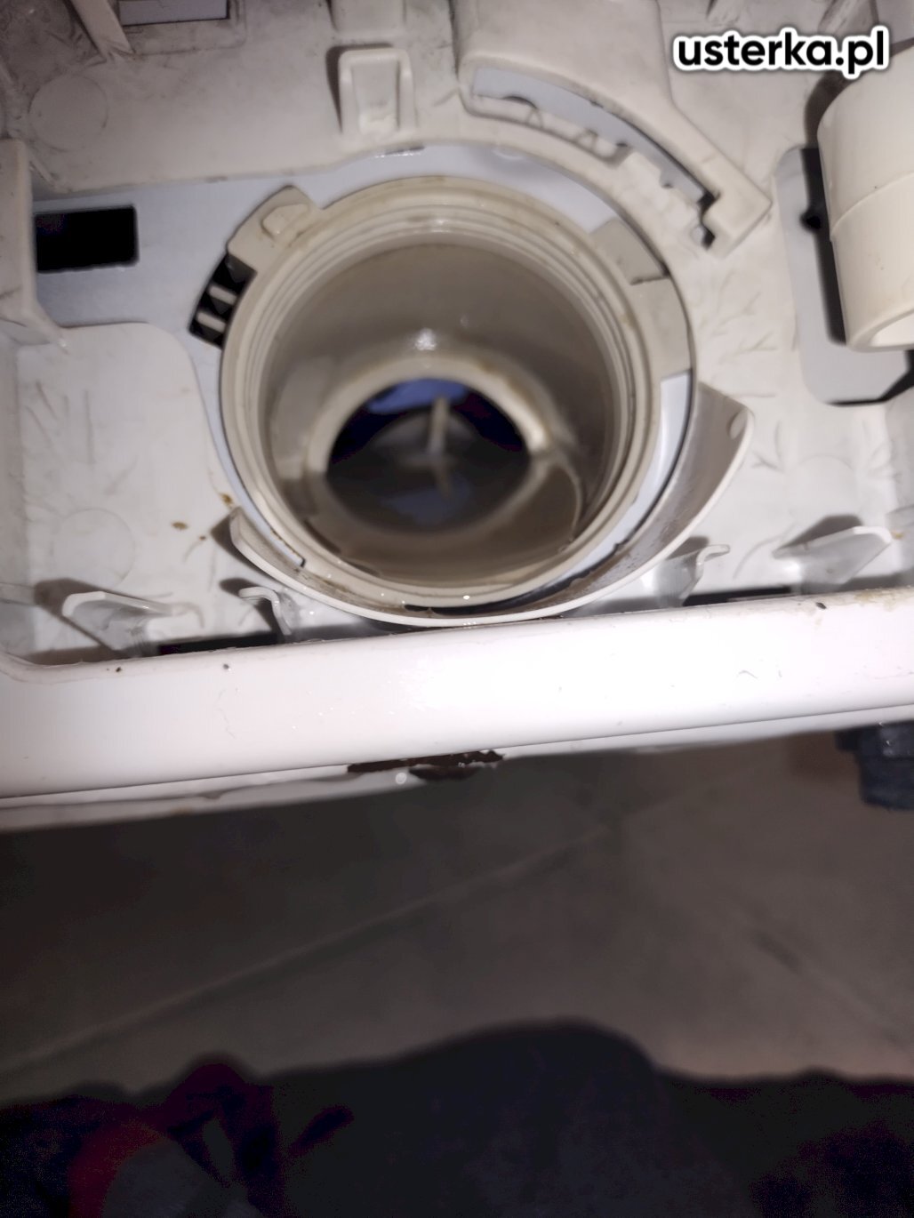 Po diagnozie stwierdzono zablokowanie pompy odpływowej przez obcy przedmiot oraz uszkodzenie fartucha, który wymaga wymiany.