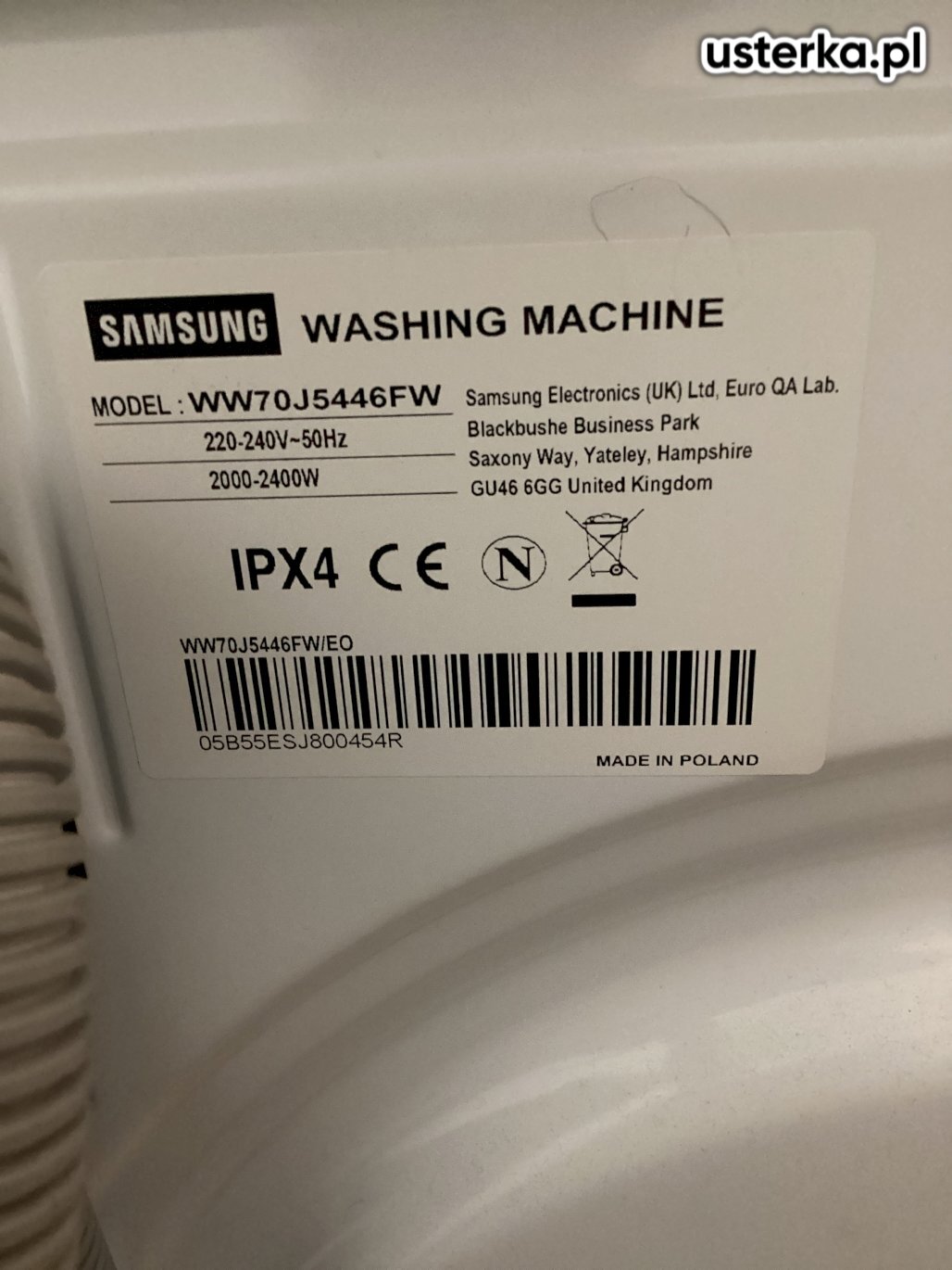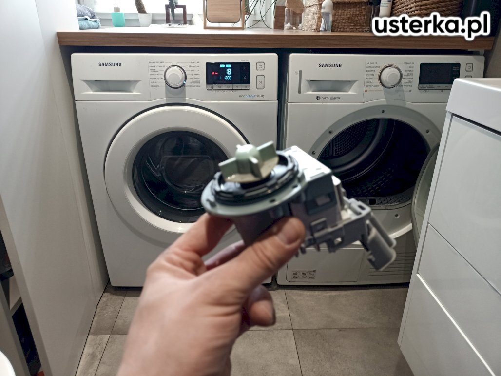 W pralce Samsung stwierdzono uszkodzenie pompy odpływowej. Po jej wymianie urządzenie działa prawidłowo.