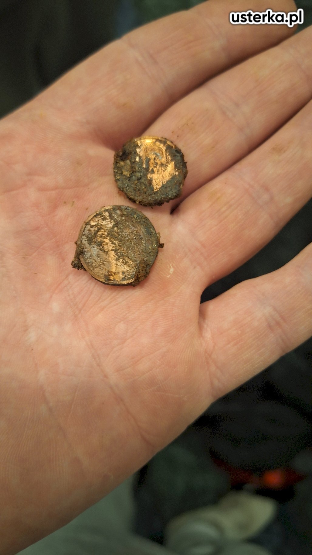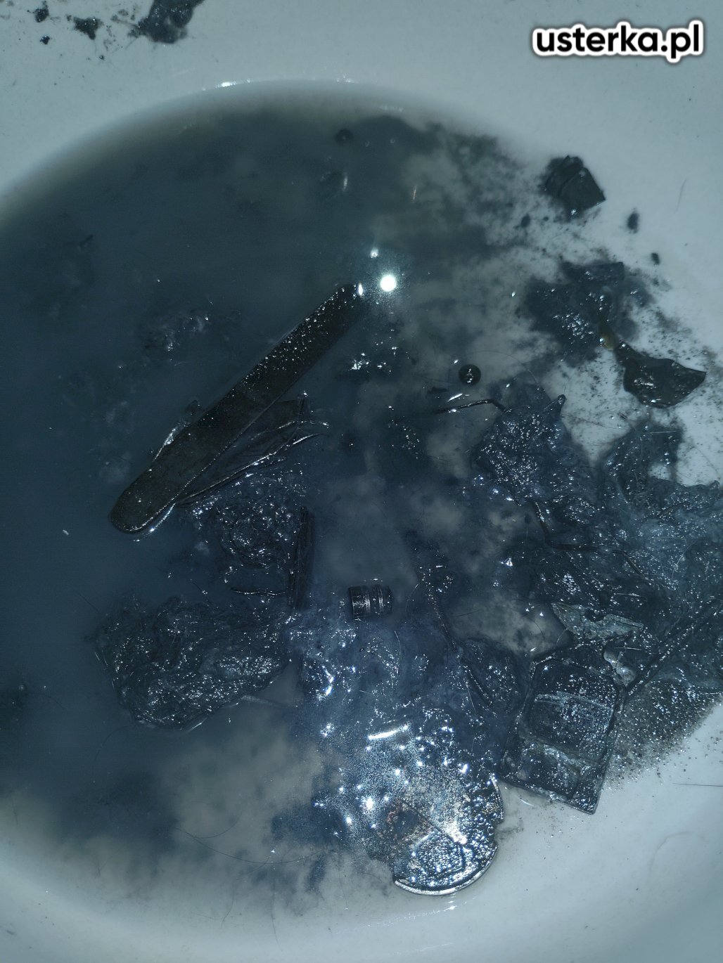 Metalową skuwkę usunięto przez otwór grzałki. Pralka działa prawidłowo, nie stwierdzono wycieków.