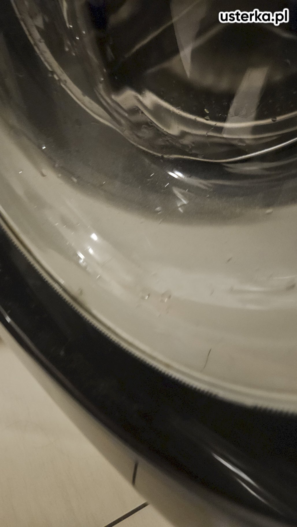 Nie stwierdzono widocznych wycieków. Filtr został wyczyszczony. Prawdopodobną przyczyną problemu były włosy na styku szyby z fartuchem.