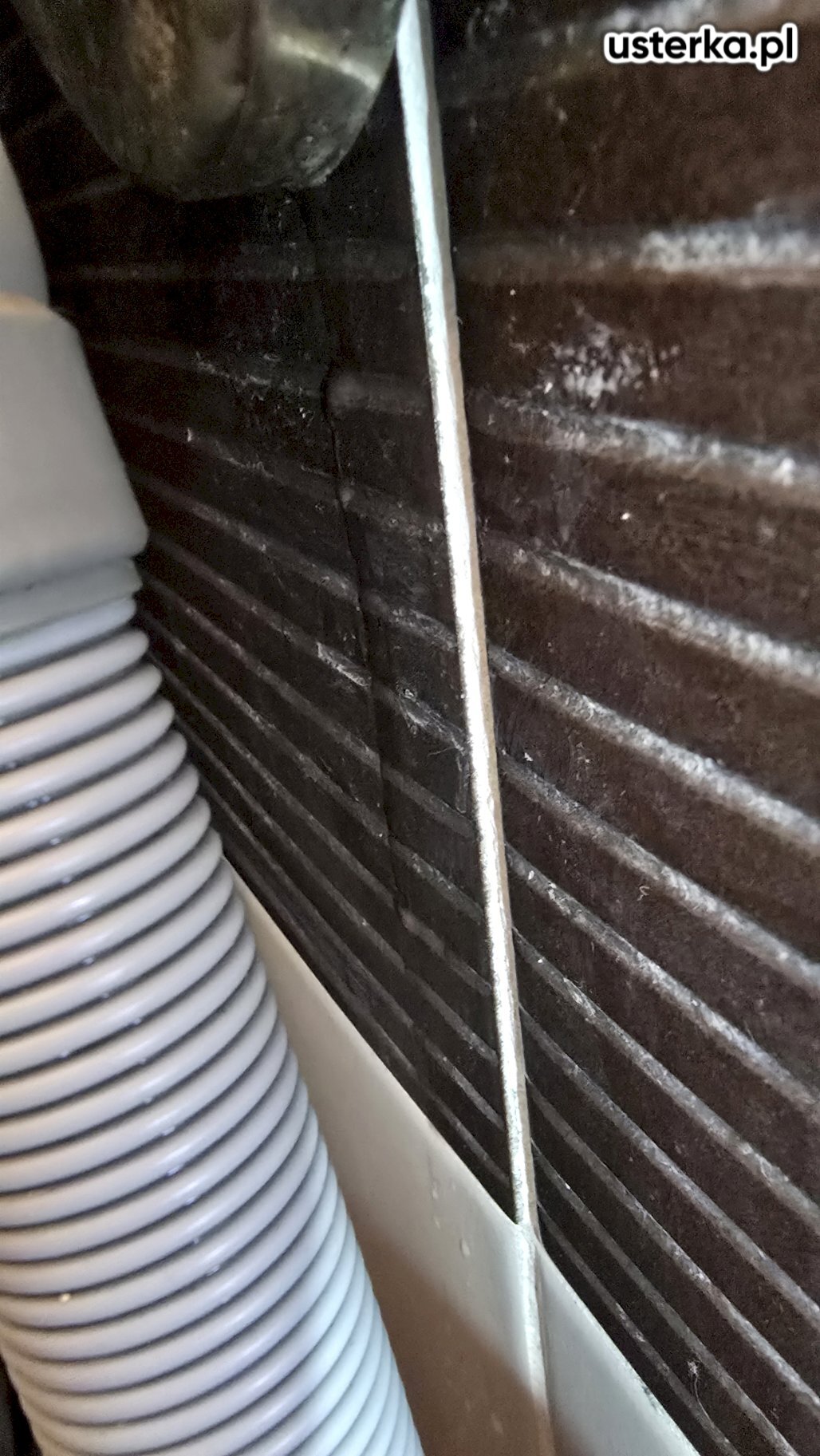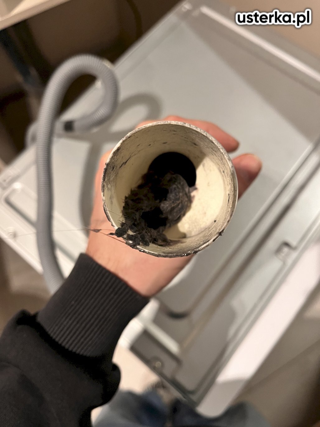 Po sprawdzeniu urządzenia ustaliłem, że przyczyną problemu był zatkany trójnik odprowadzający wodę z pralko-suszarki.