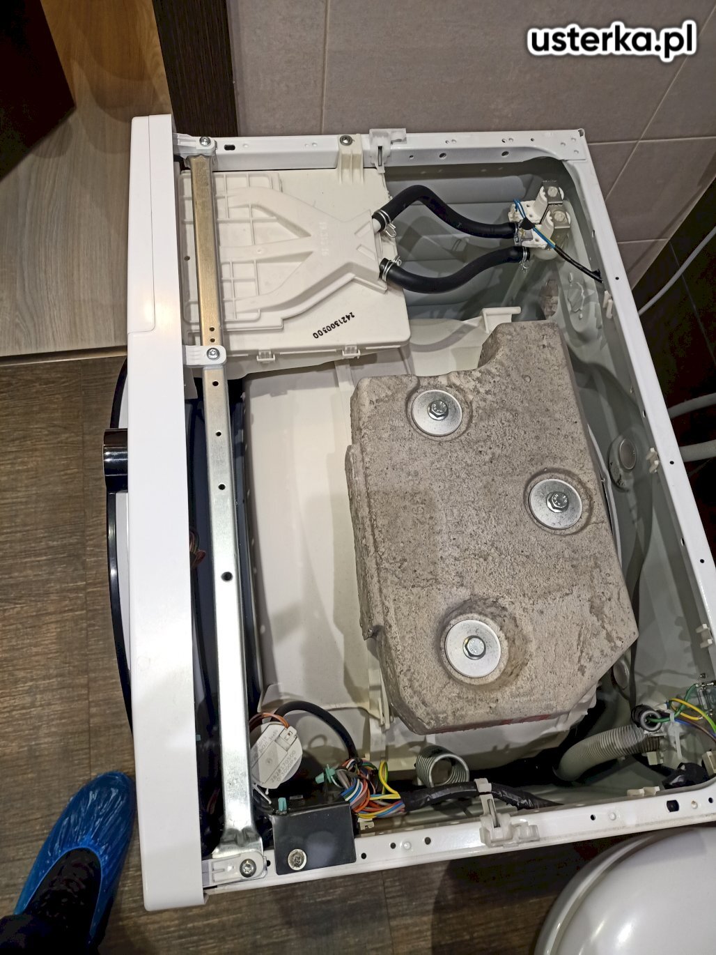 Zdemontowałem gumową matę spod pralki, skontrolowałem amortyzatory i sprężyny. Pralka działa stabilnie i prawidłowo.