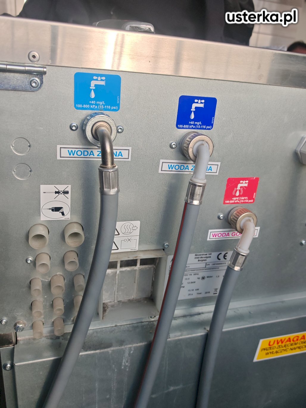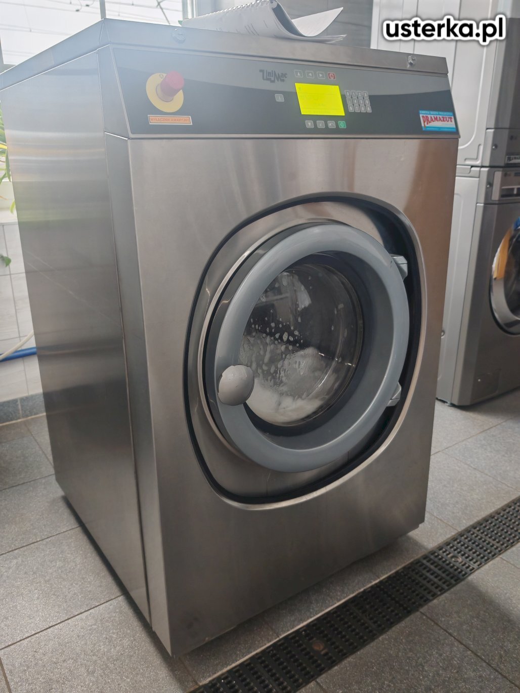 Pralka przemysłowa Uni Max nie pobierała wody do płukania. Sprawdziłem drożność węży i czystość sitek – oba elementy były w porządku, jednak jedno z sitek było źle zamontowane, co blokowało elektrozawór. Po poprawnym zamontowaniu sitka pralka działa prawidłowo.