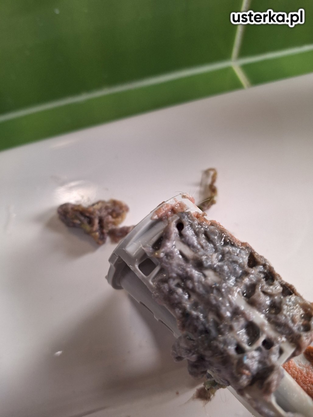Wykonano czyszczenie całego układu odpływowego. Pralka jest mocno zakamieniona, możliwa konieczność kolejnej wizyty w celu dalszego czyszczenia.