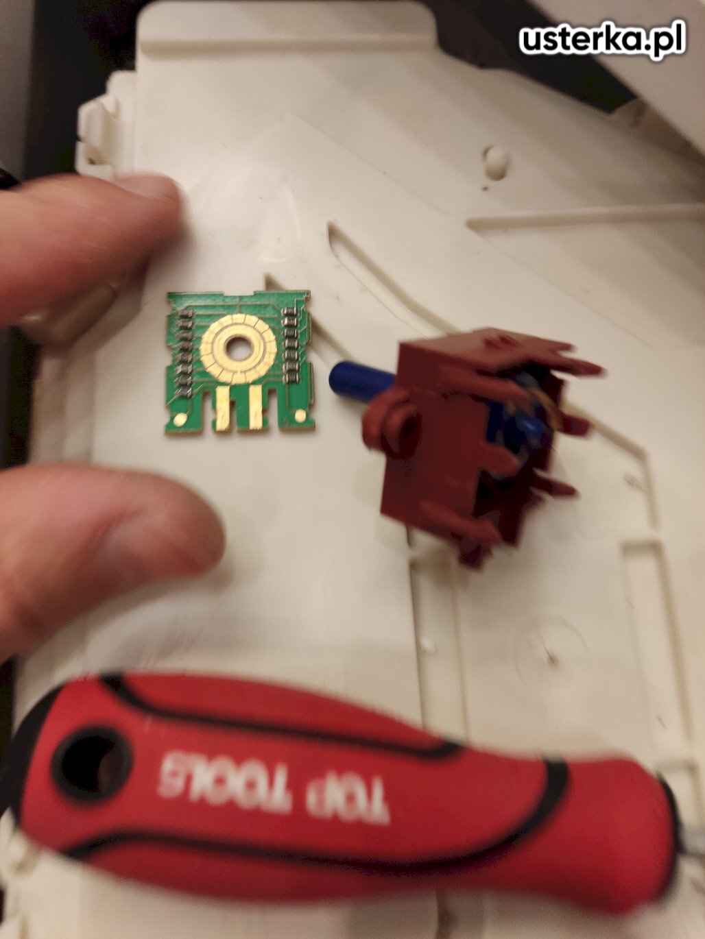 W pralce Candy uszkodzone było pokrętło programatora. Oczyszczono styki oraz odpowiednio dopasowano blaszki, aby zapewnić właściwy docisk do pinów. Po naprawie pokrętło działa prawidłowo i przełącza programy bez zakłóceń.