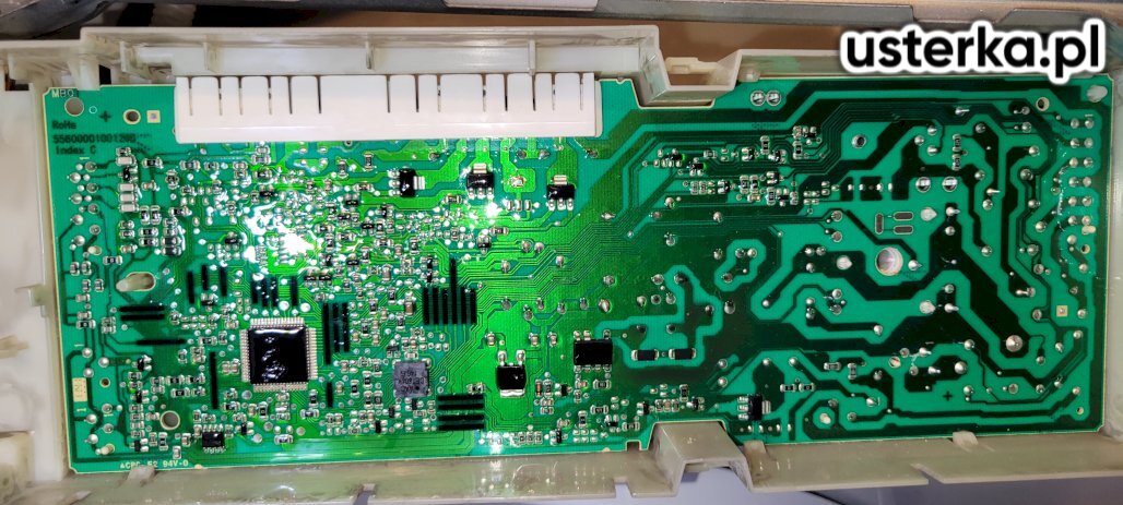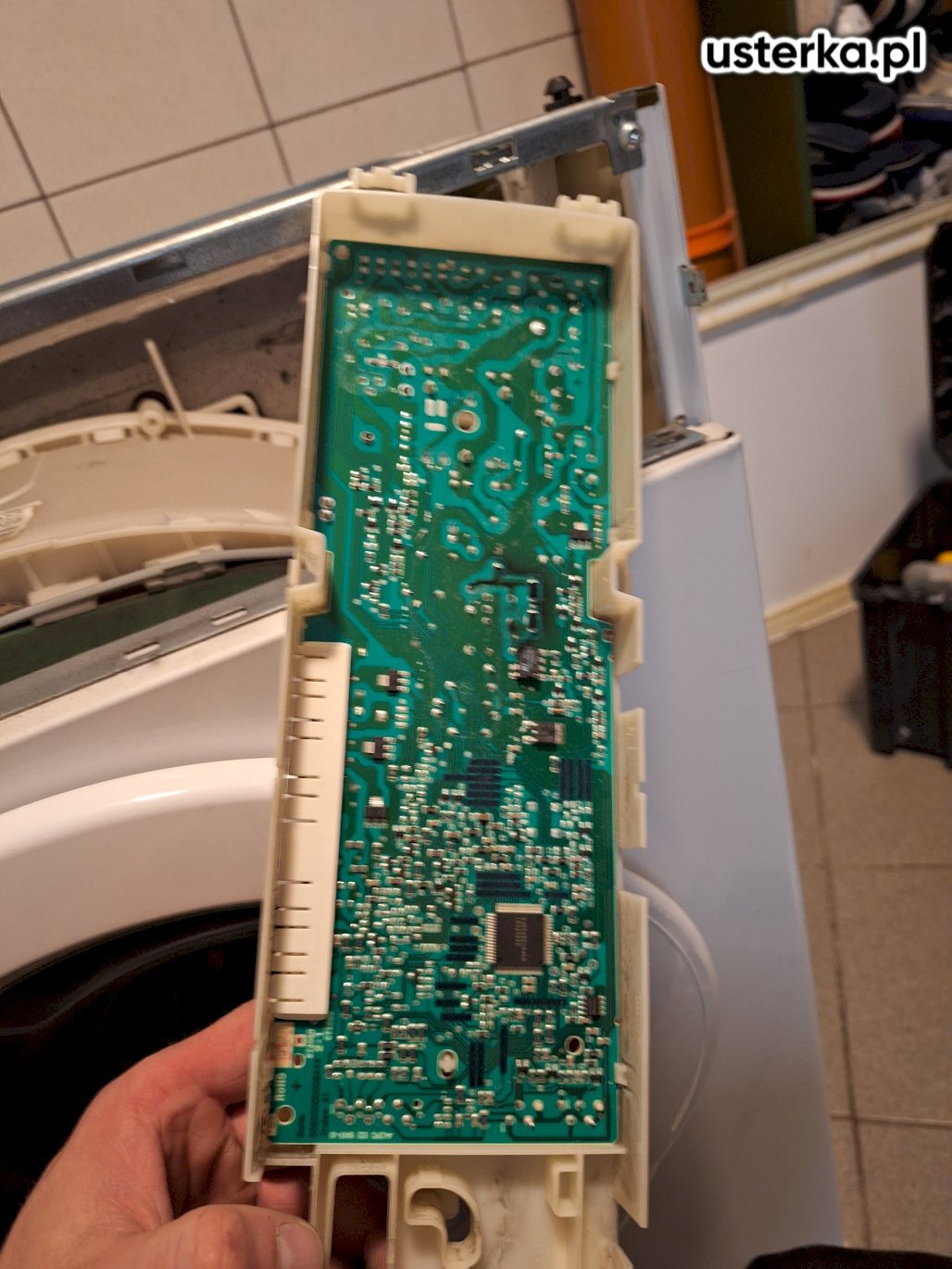Po sprawdzeniu instalacji elektrycznej i rozebraniu panelu sterowania okazało się, że panel jest uszkodzony i ma przepalone ścieżki. Koszt nowego panelu to 900 zł. Klient zdecydował się zrezygnować z naprawy i zakupić nową pralkę.