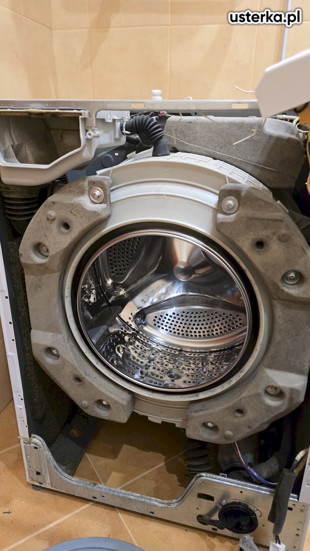 Diagnostyka wykazała uszkodzenie bębna, łożysk i obejmy.