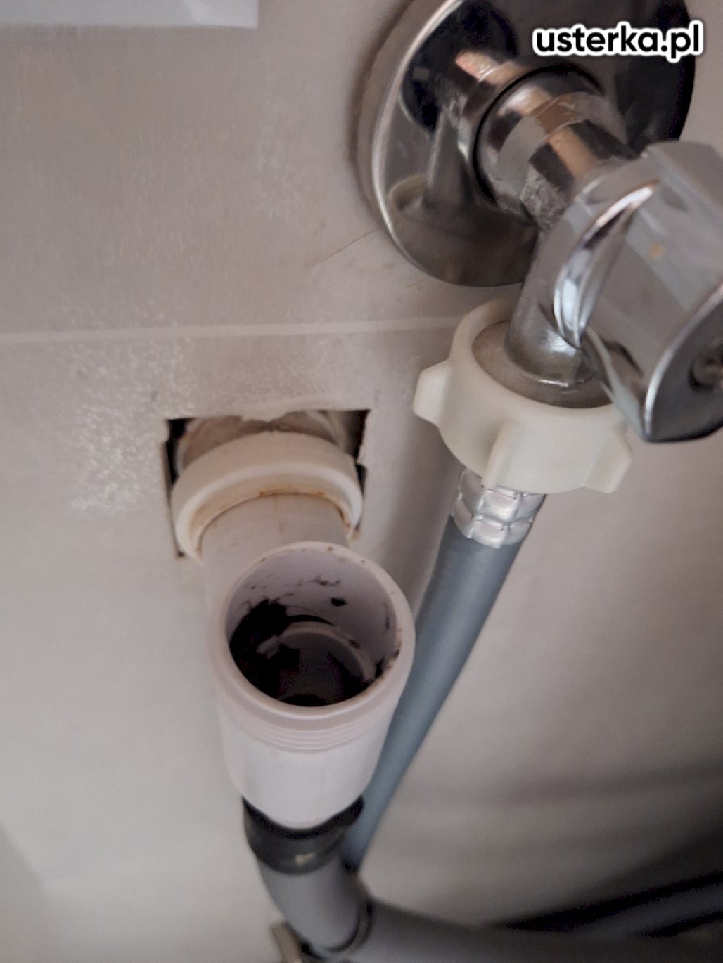 Wyciek został spowodowany uszkodzoną uszczelką w rurze kanalizacyjnej. Po wymianie uszczelki problem został rozwiązany.