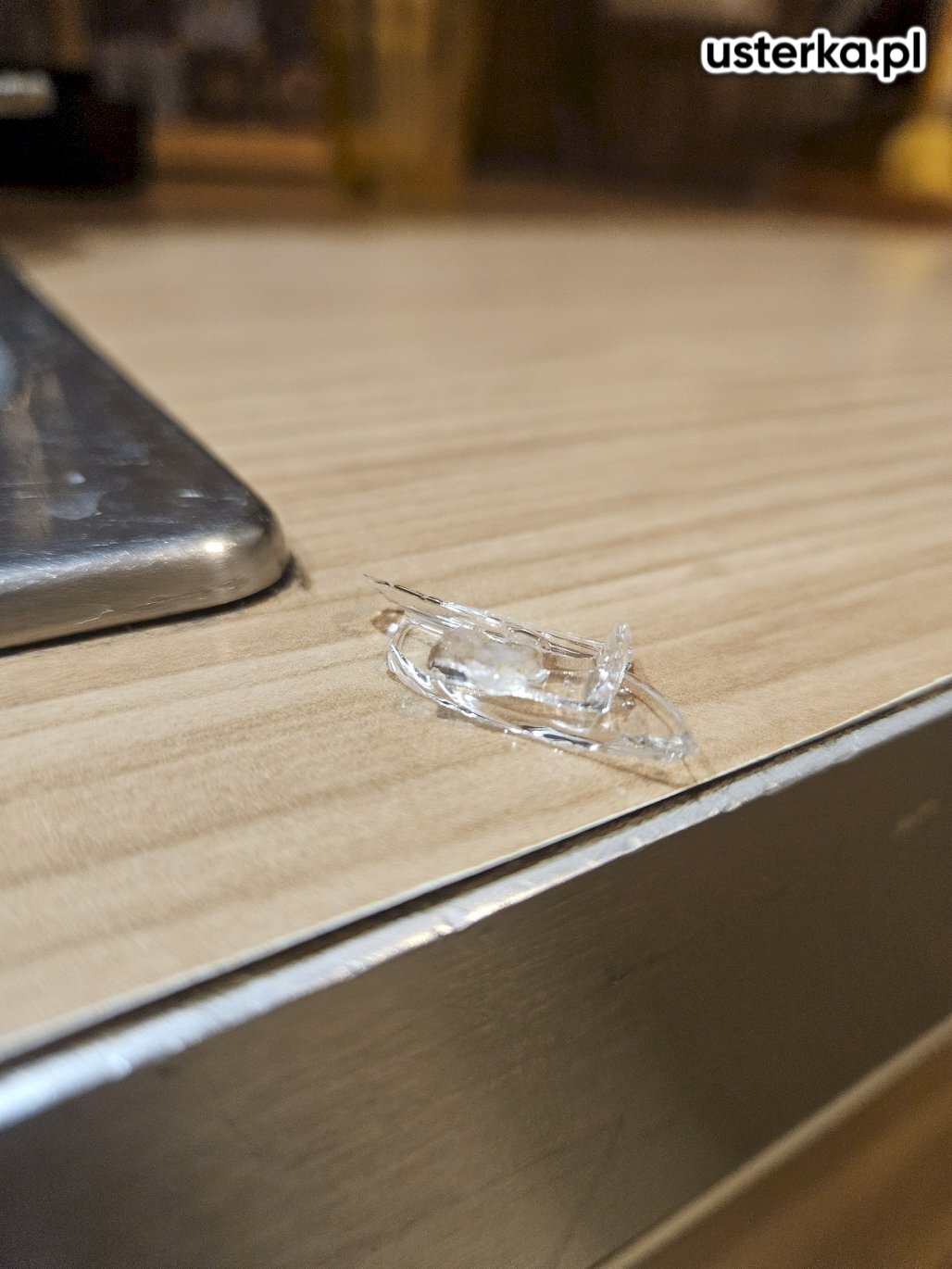Przyczyną problemu z odprowadzaniem wody był zablokowany wirnik pompy odpływu przez fragmenty szkła.