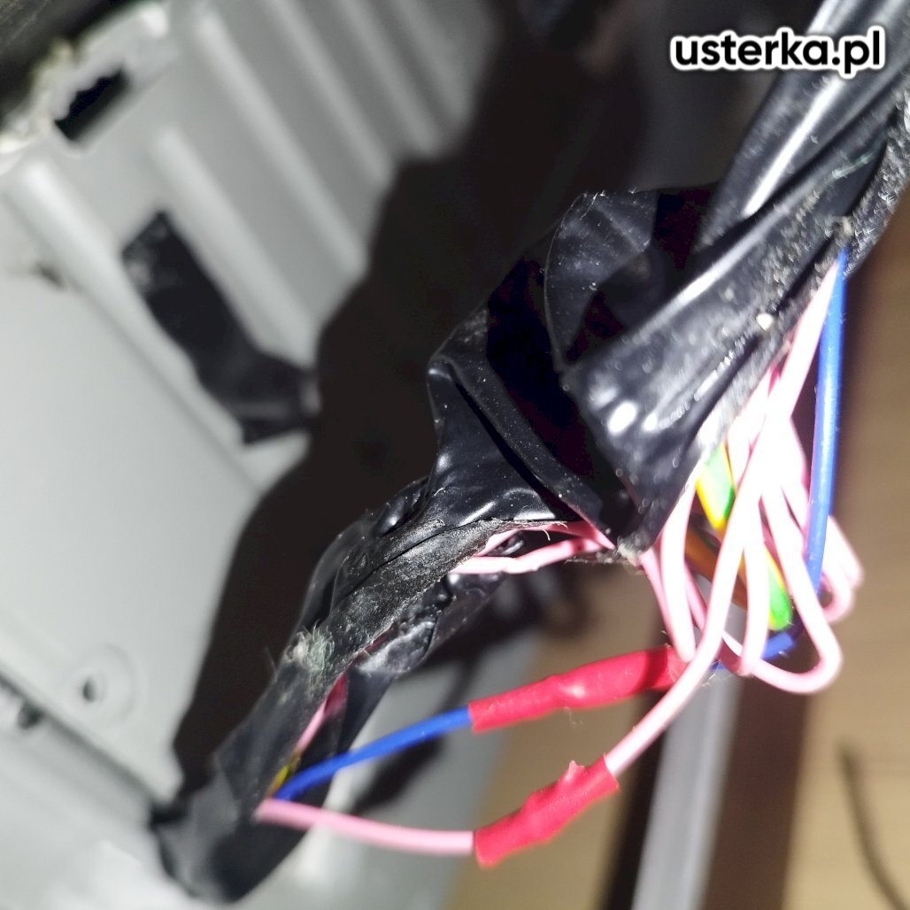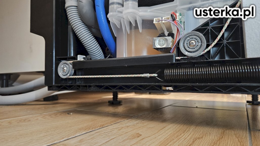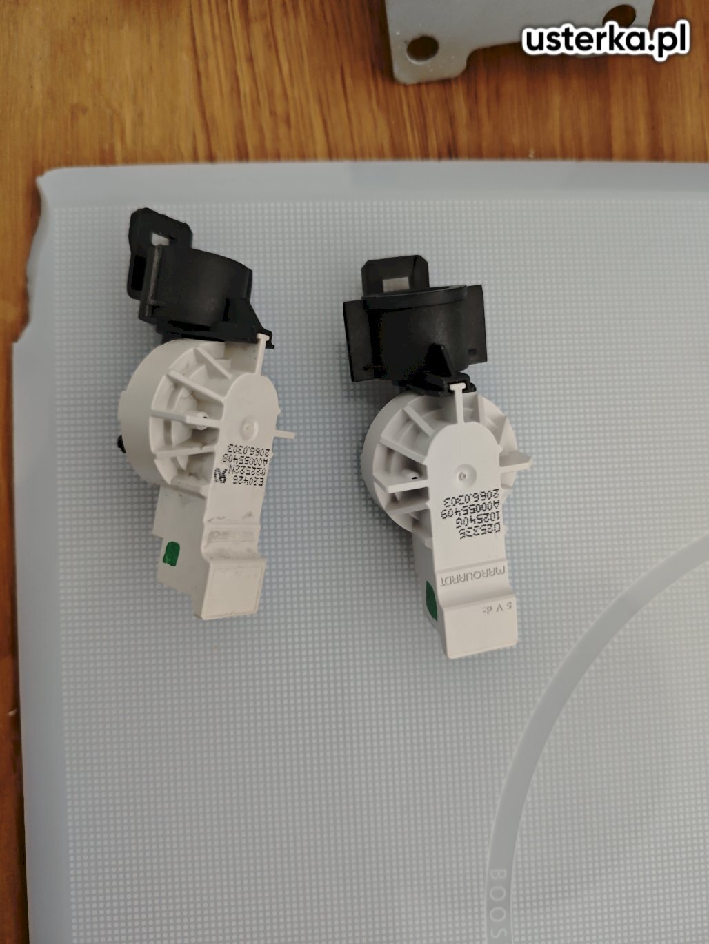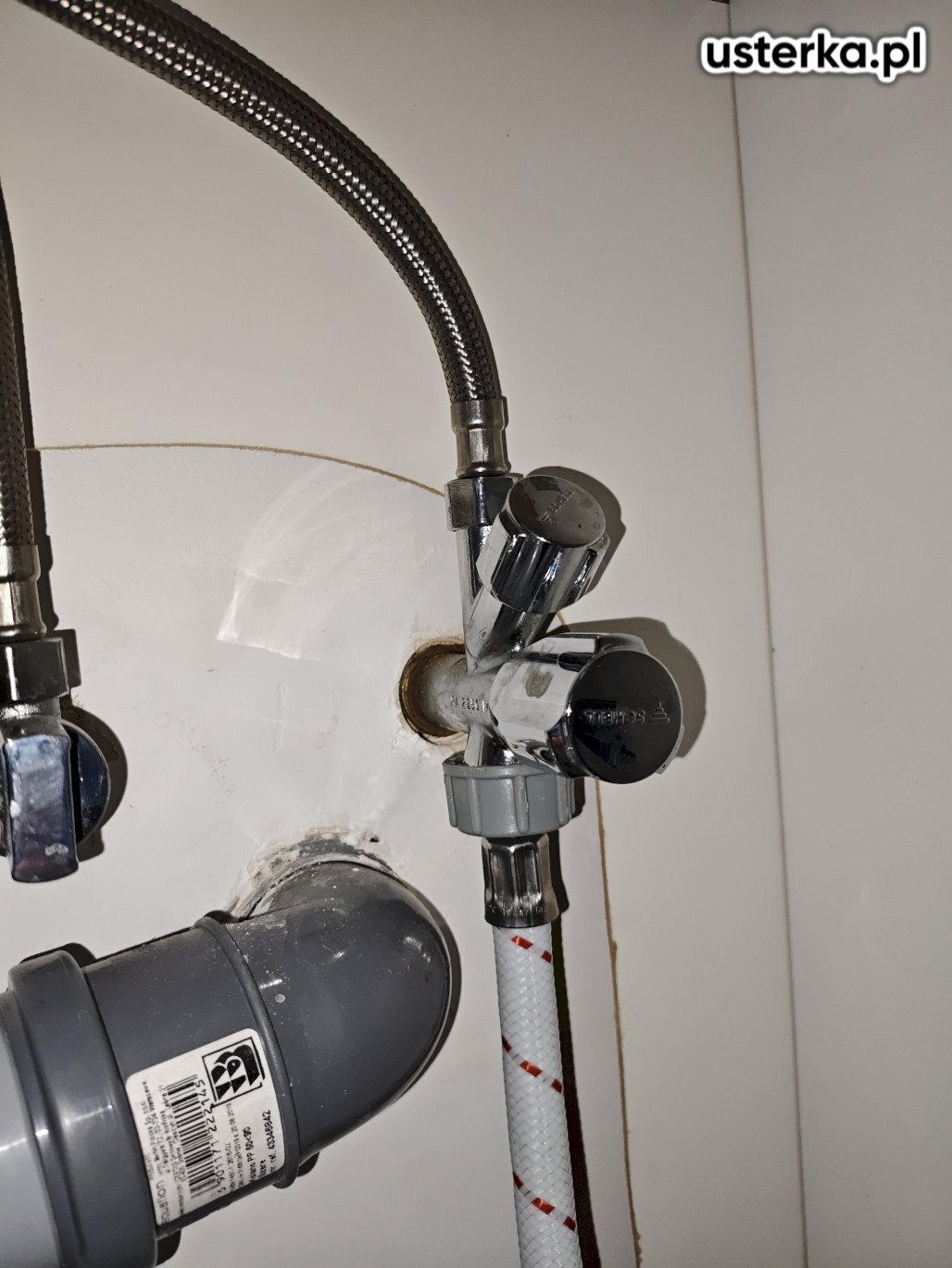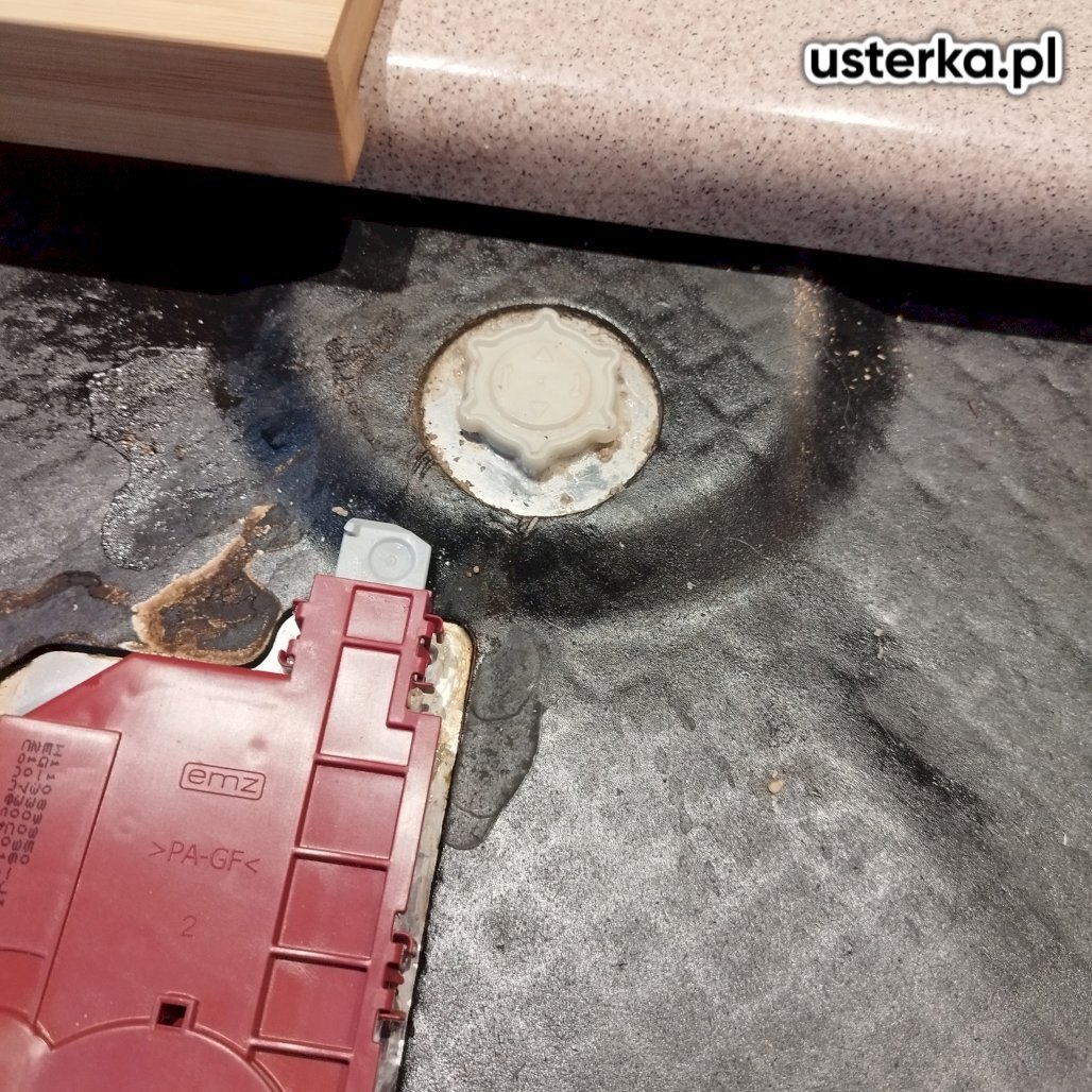Wężyk doprowadzający wodę został poprawnie zamocowany, wycieki usunięte. Zalało zawór trójdrożny, zawór wody, pompę myjącą i grzałkę.