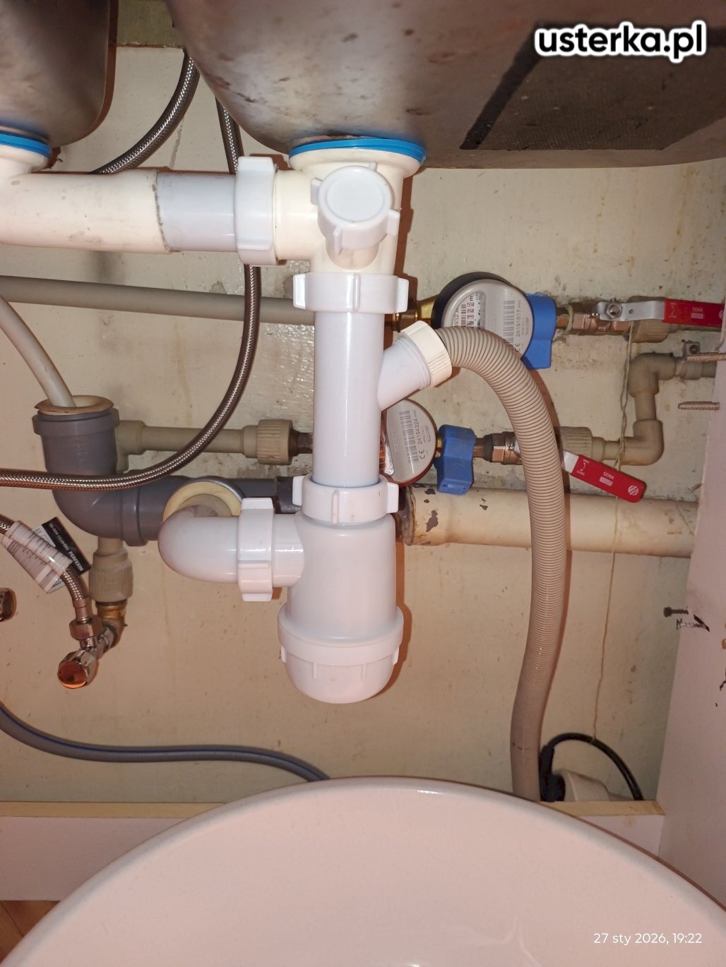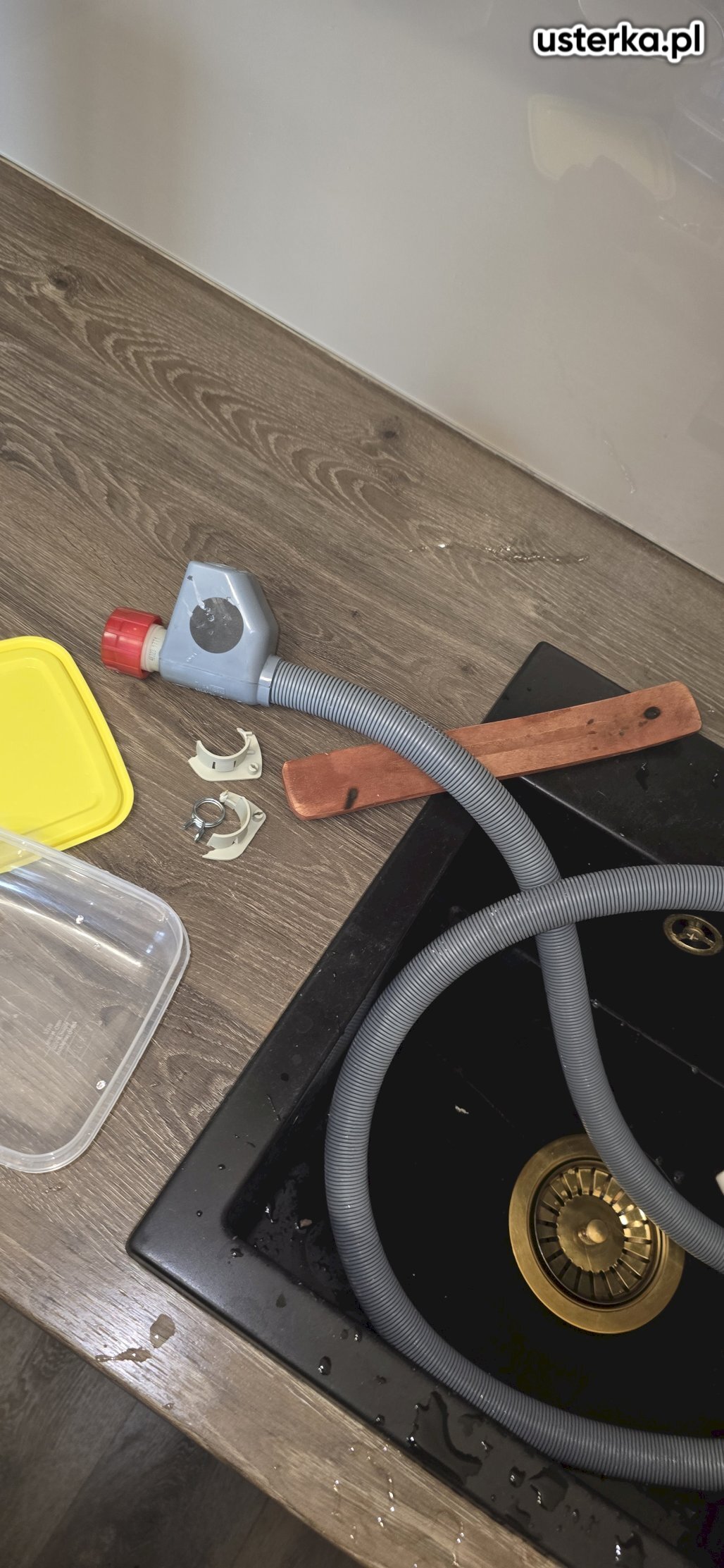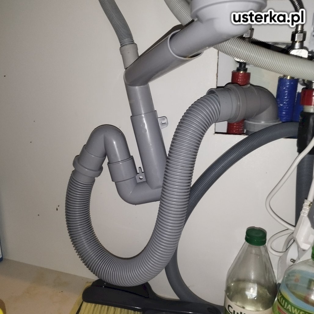 Uszczelniłem połączenie węża odpływowego zmywarki z syfonem, eliminując wyciek.