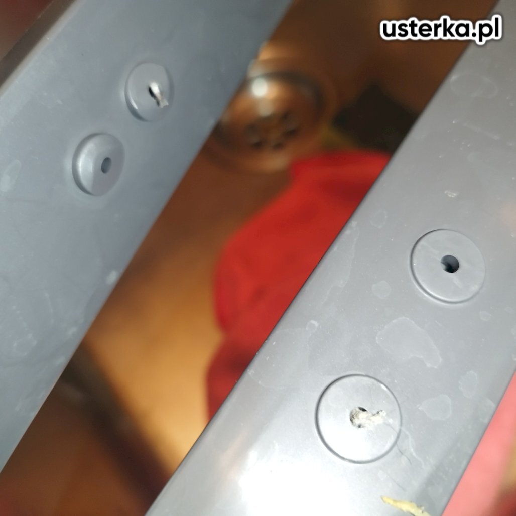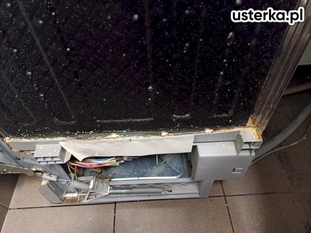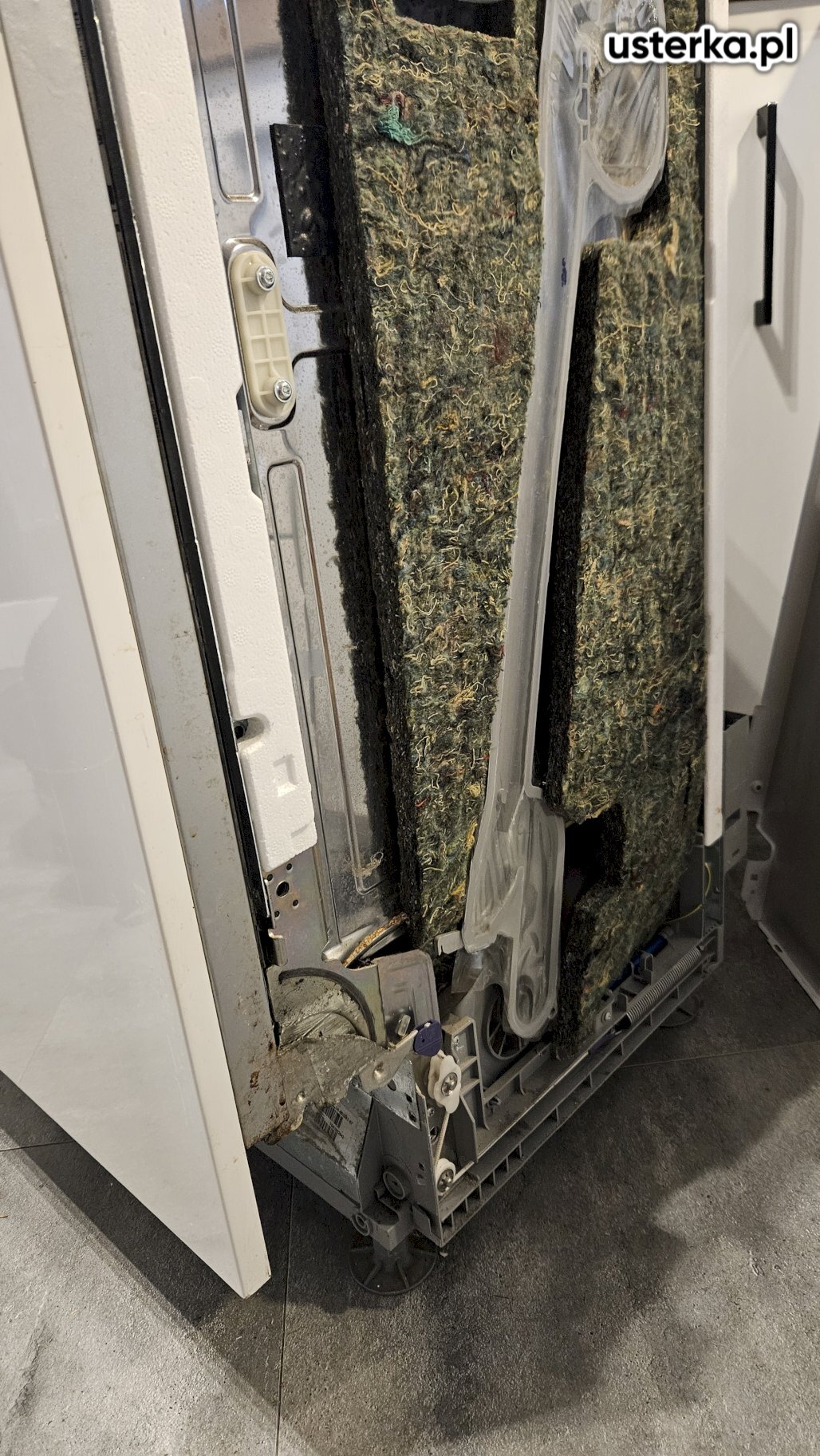 W zmywarce Bosch drzwi nie otwierały się w pełni. Po demontażu bocznej osłony stwierdziłem, że element systemu montażowego do zlewozmywaka blokował zawias.