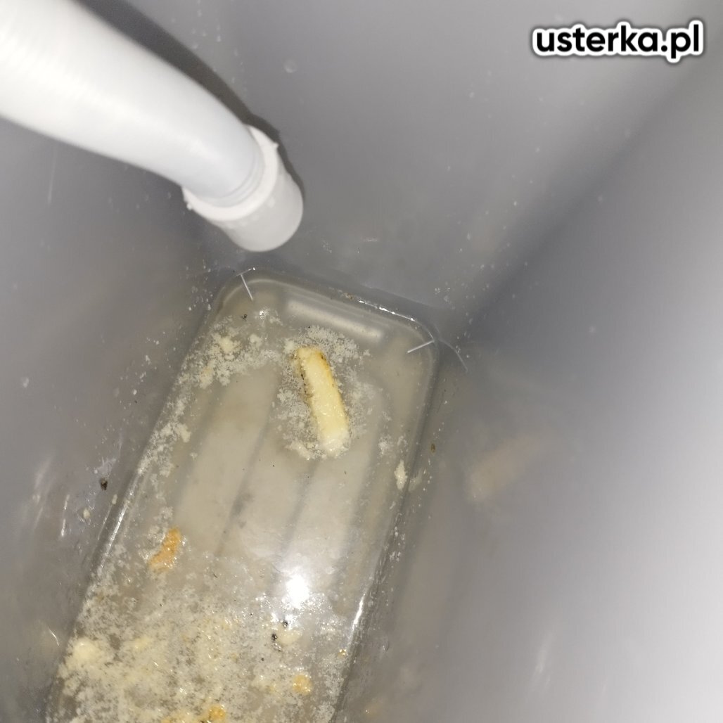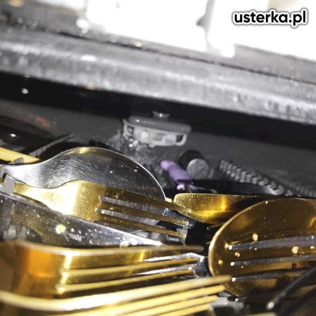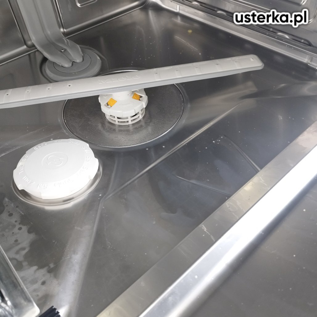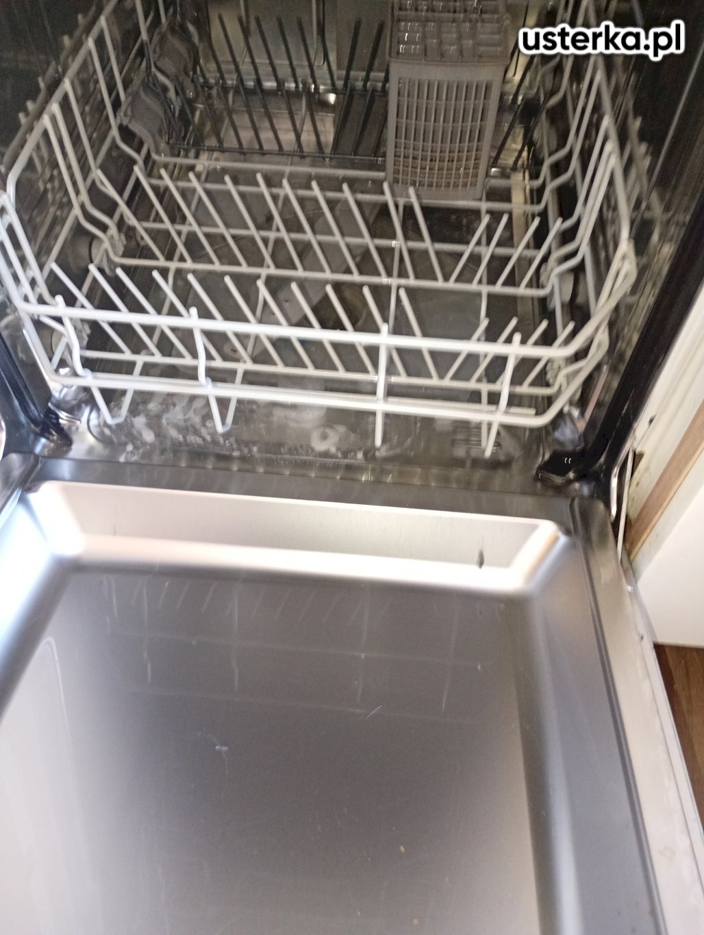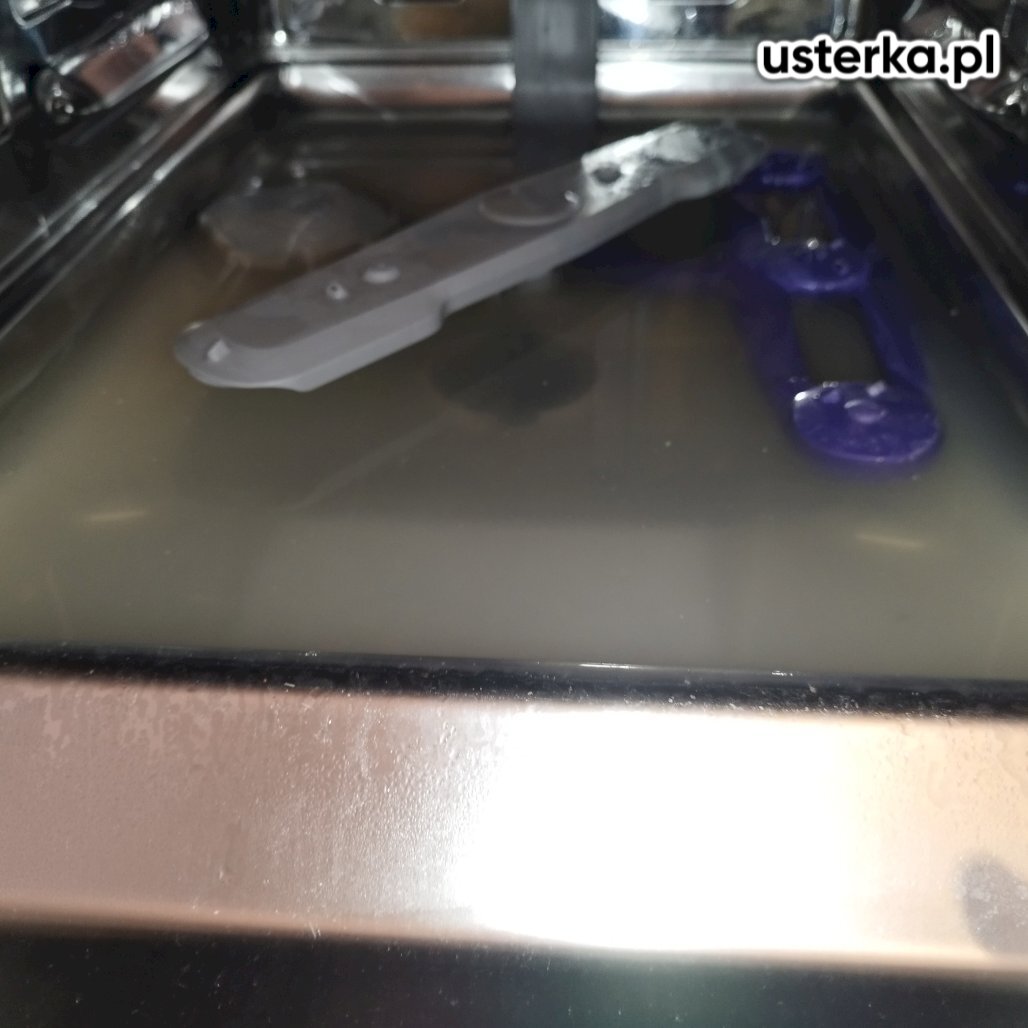 Osuszyłem dno zmywarki, nie stwierdziłem widocznych wycieków. Przeczyściłem komorę urządzenia.