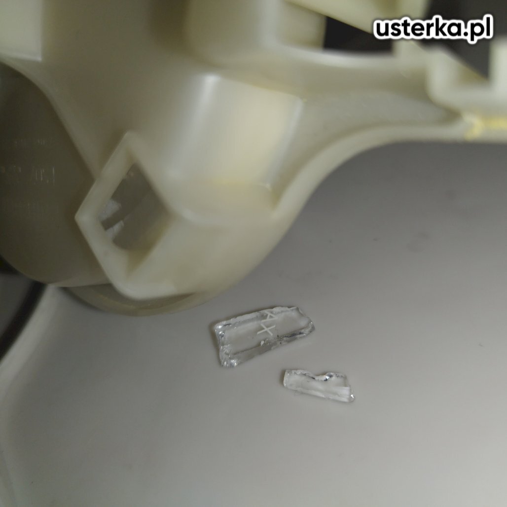 Zgłoszono problem z hałasem i błędami w pracy zmywarki Whirlpool. W trakcie diagnozy usunięto odłamki szkła z komory filtrów, pompy spustowej oraz dysz zraszaczy. Przyczyną usterki było przedostanie się resztek przez niedokręcone filtry. Po czyszczeniu i usunięciu zanieczyszczeń urządzenie działa prawidłowo. Zalecono mycie delikatnych szkieł ręcznie lub korzystanie ze specjalnego programu.