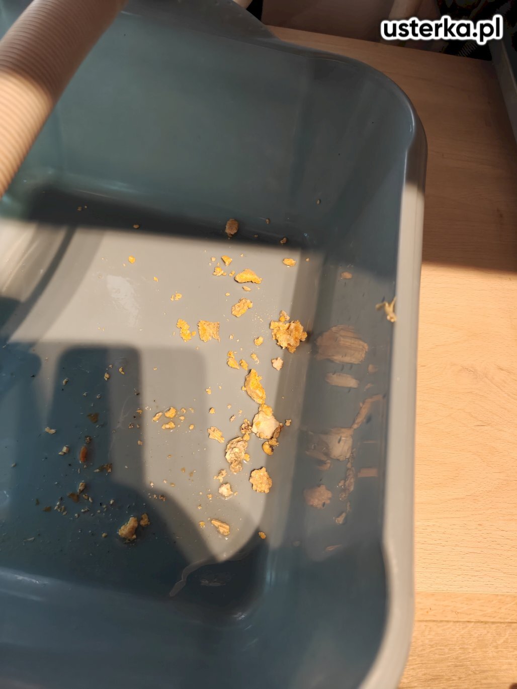 Usunięto zalegającą wodę z komory, wyczyszczono filtr, pompę odpływową oraz śmigła myjące (dysze były zatkane pestkami cytryny). Oczyszczono uszczelki drzwi. Sprawdzono szczelność urządzenia – brak wycieków. Skontrolowano czujnik pływakowy, drożność węża odpływowego i syfonu oraz sitko na wężu dopływowym. Zmywarka przeszła program testowy bez zarzutów. Klientka otrzymała wskazówki dotyczące prawidłowej eksploatacji sprzętu.